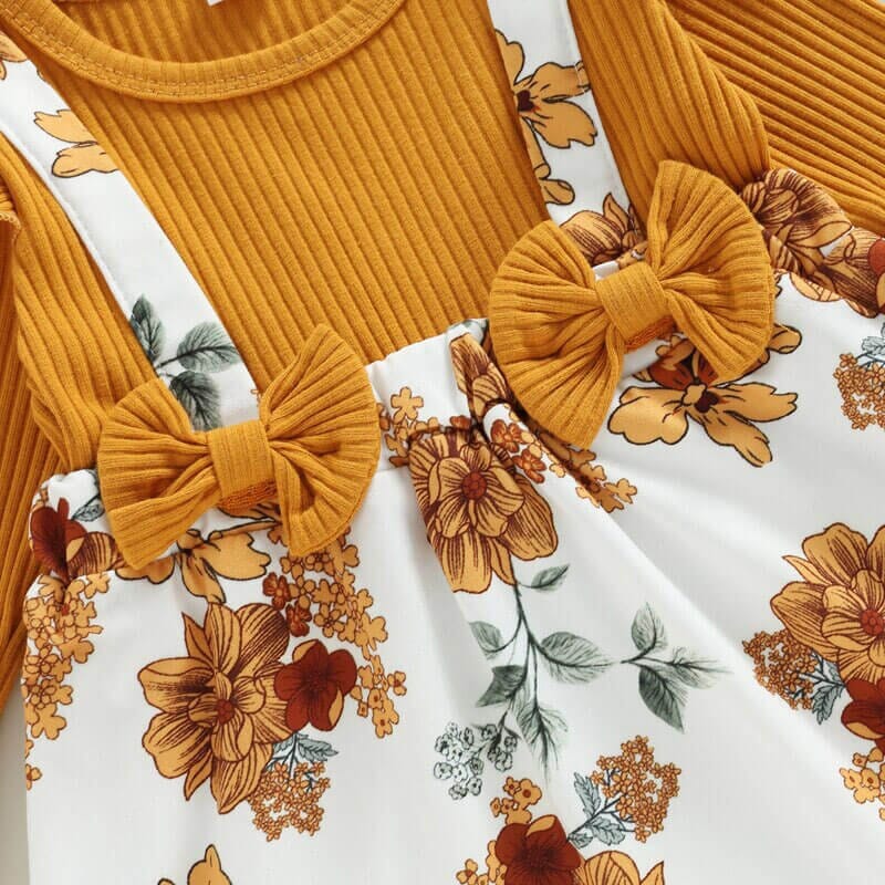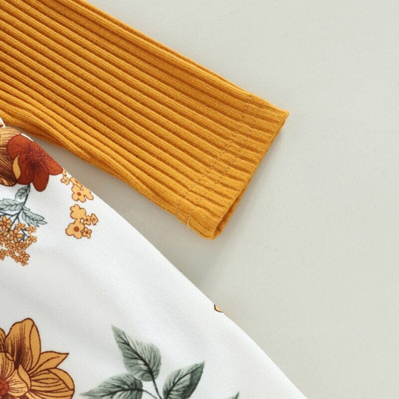 Elevate your toddler's style with this delightful long sleeve dress in a vibrant orange hue. The ribbed texture adds a touch of coziness, while the charming bows at the front infuse a playful element. The dress is adorned with cute and colorful flower prints, bringing a sense of joy and charm to her every movement. Whether she's exploring the world around her or attending a special event, this dress offers both comfort and style.