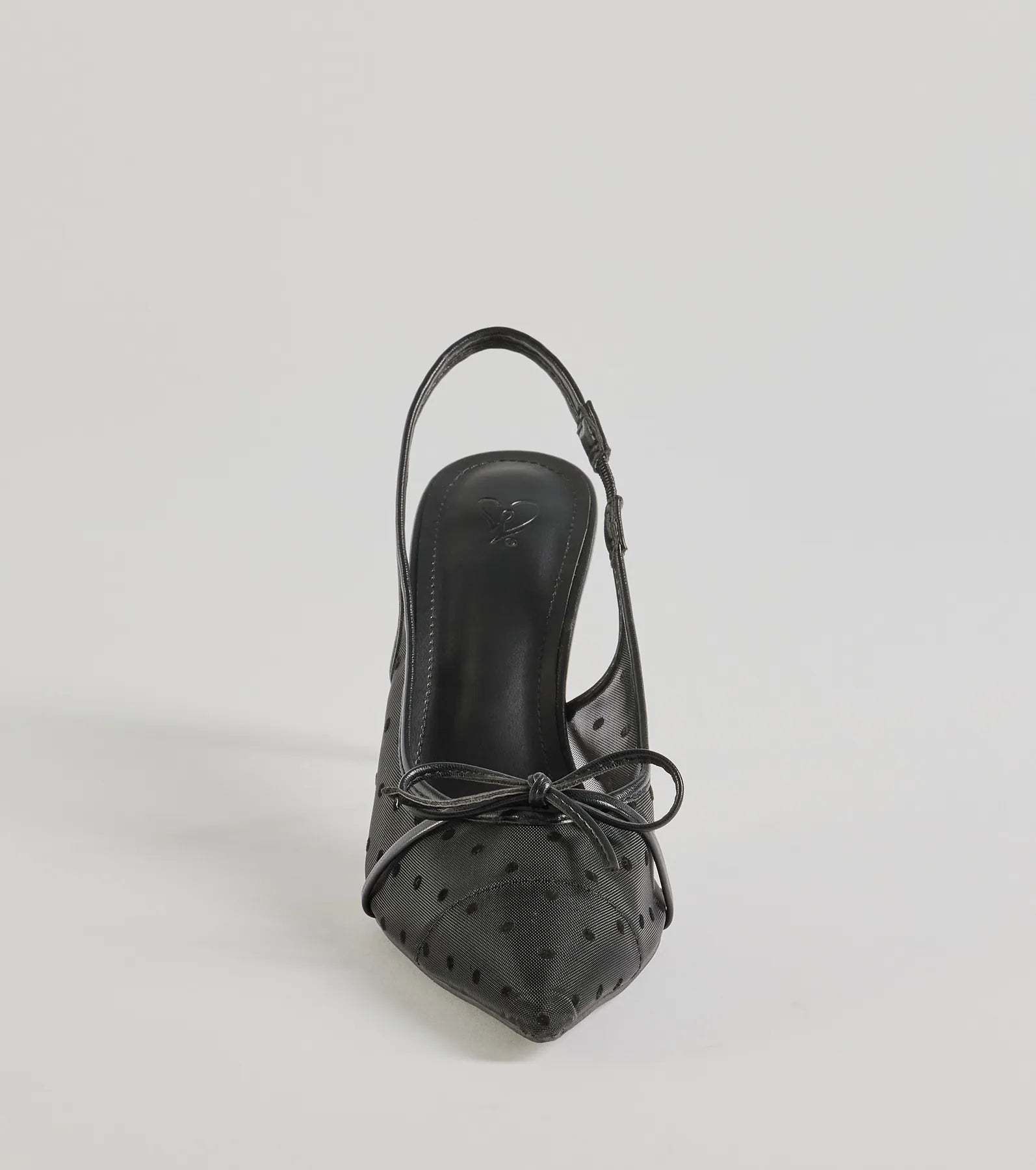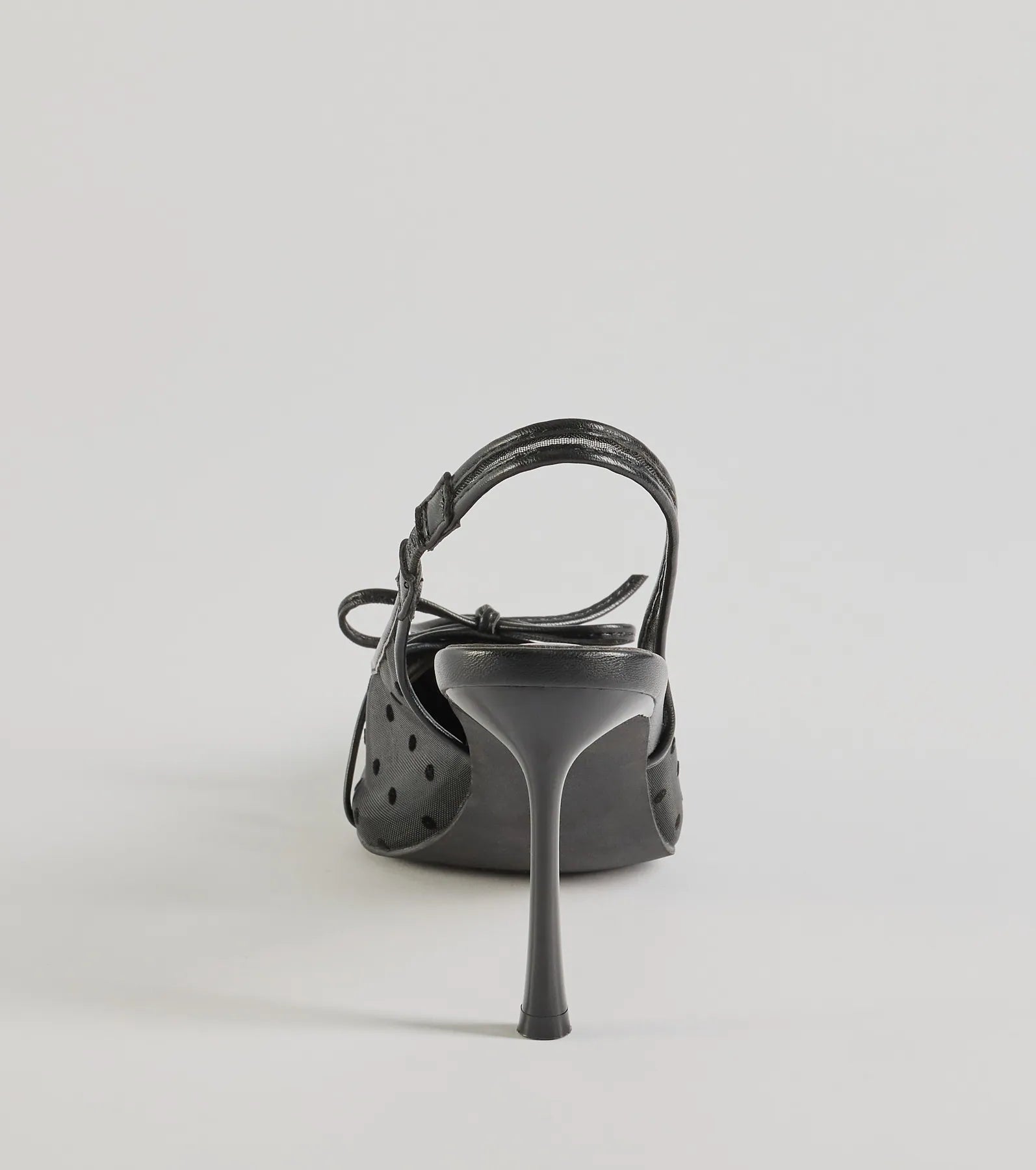 Chic vibes alert! Rock the adorably chic polka dot slingback stiletto heels with a sheer mesh pattern and cute bow accent. Adjustable strap and cushioned insole for ultimate comfort.